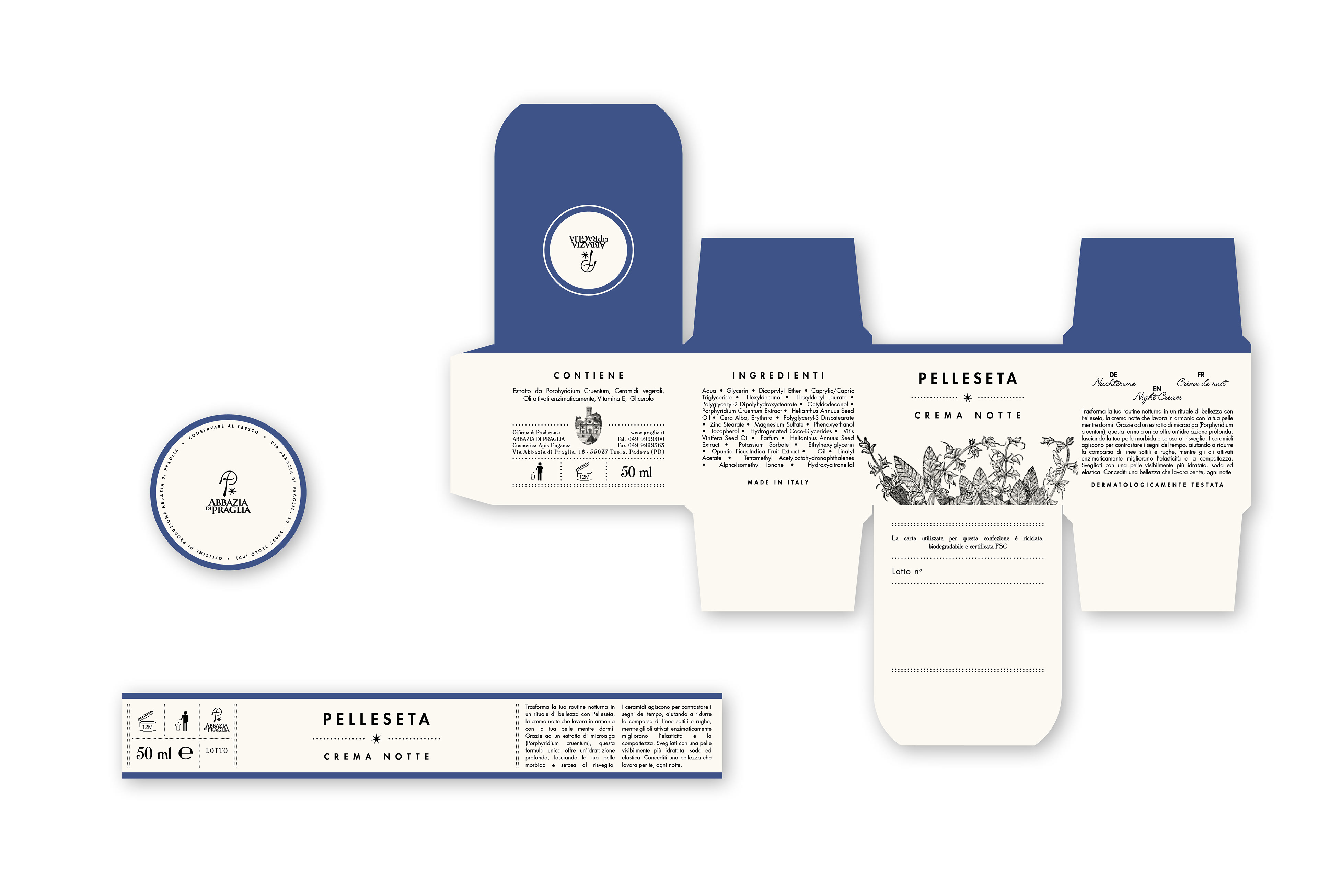 Per l’Abbazia di Praglia ho avuto il piacere di creare un packaging nuovo partendo da uno già esistente per tutti i loro prodotti quali creme, tisane, saponi e biscotti.