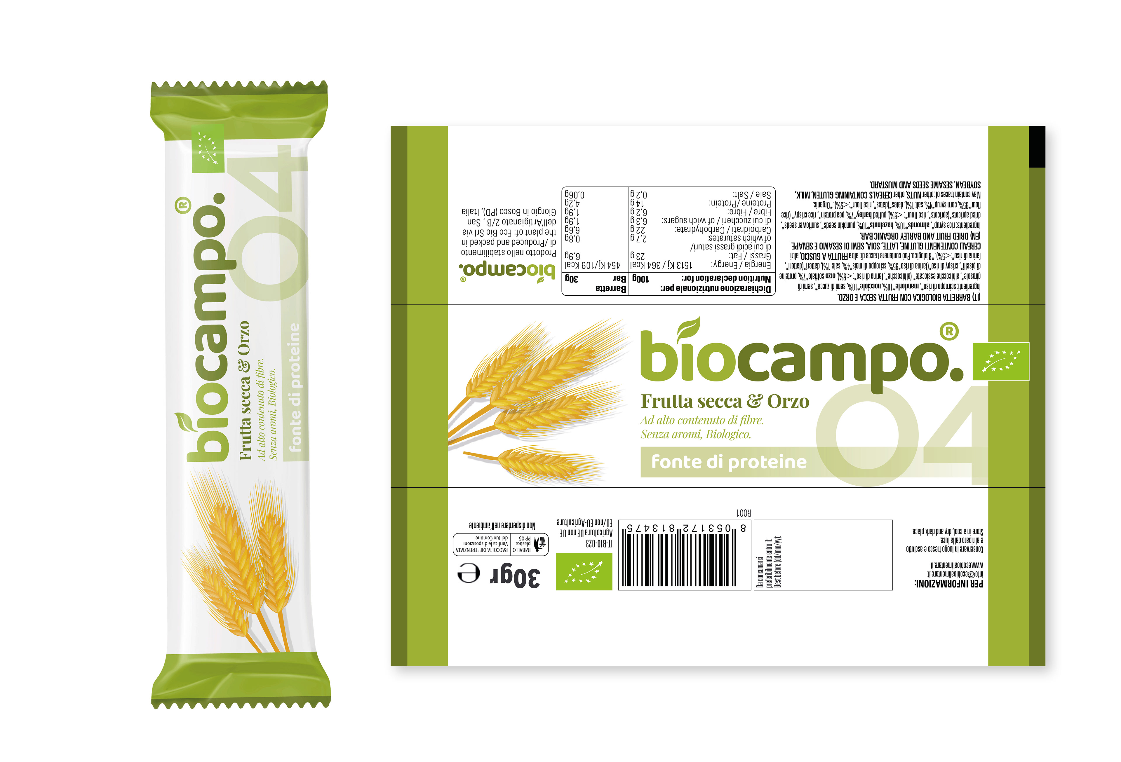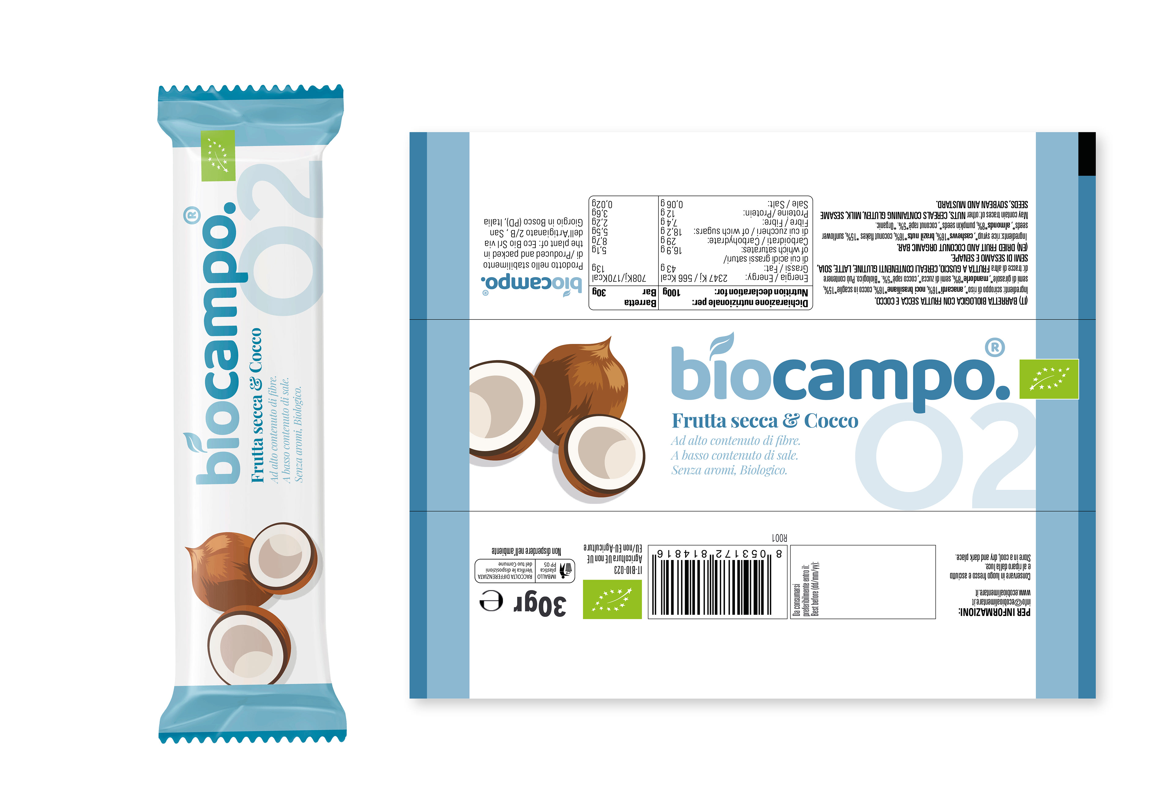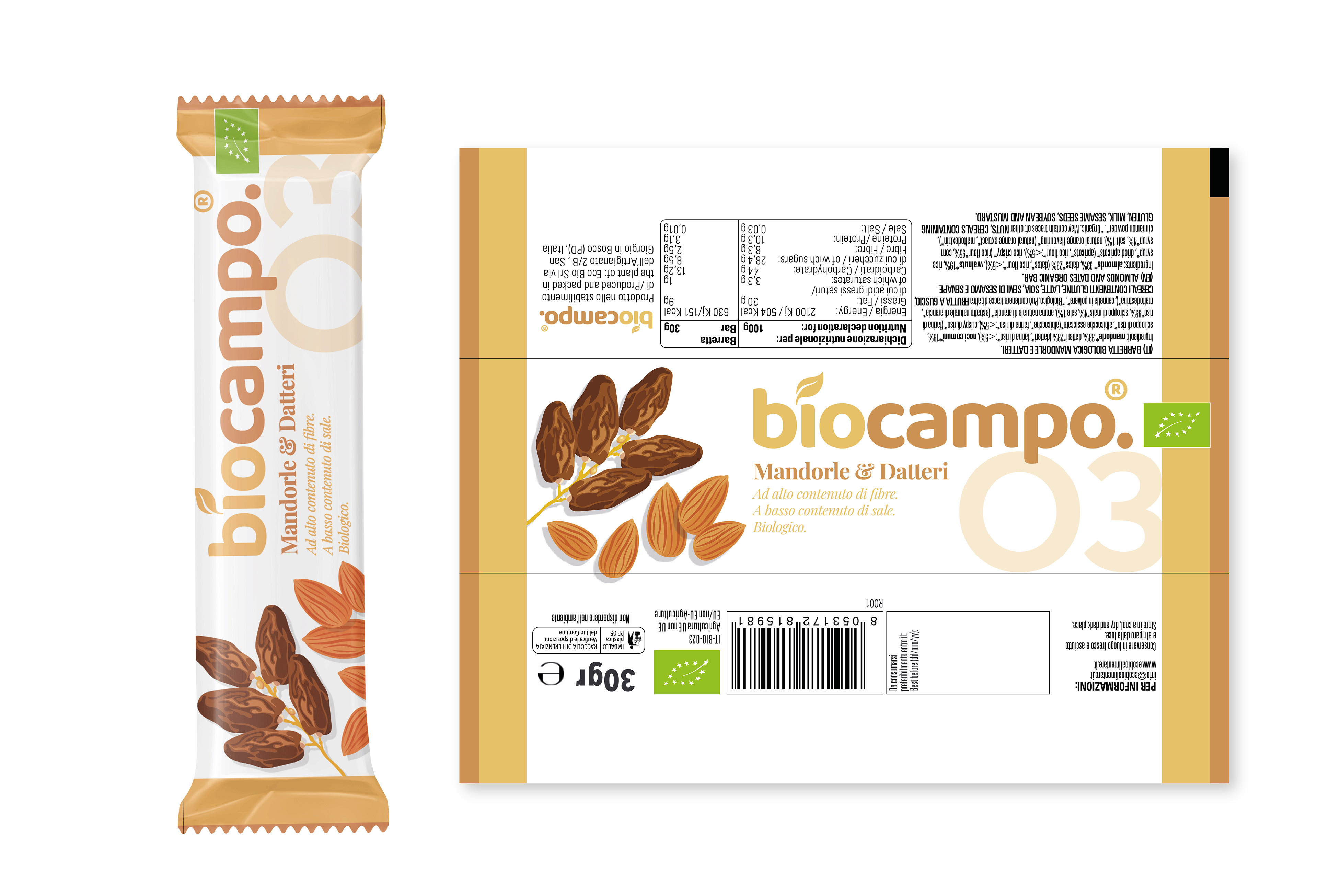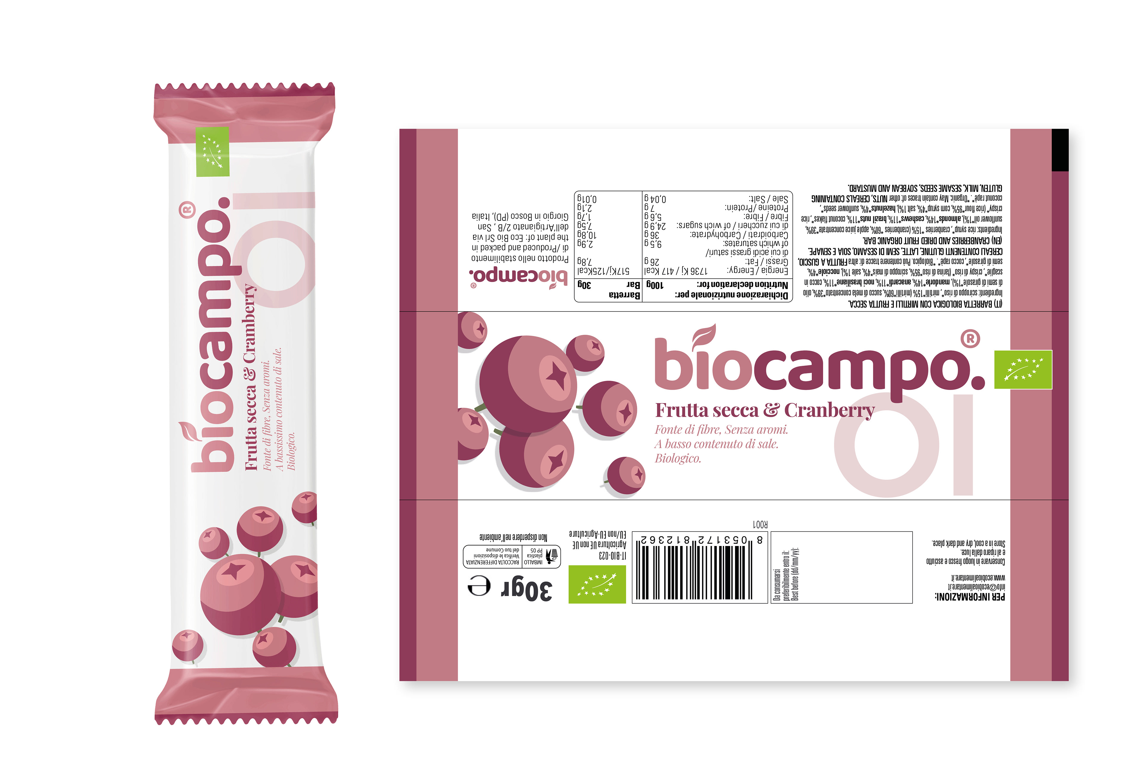 Quando sono entrato a far perte dello Studio GDS ho cominciato a seguire questo progetto a lavori iniziati, quindi a mia disposizione avevo già sia il marchio creato da Giovanni sia una grafica imbastita per le barrette. Il mio ruolo è stato da subito quello di coordinare i quattro gusti di barrette tra loro dando vita alla collezione in fase di creazione.
